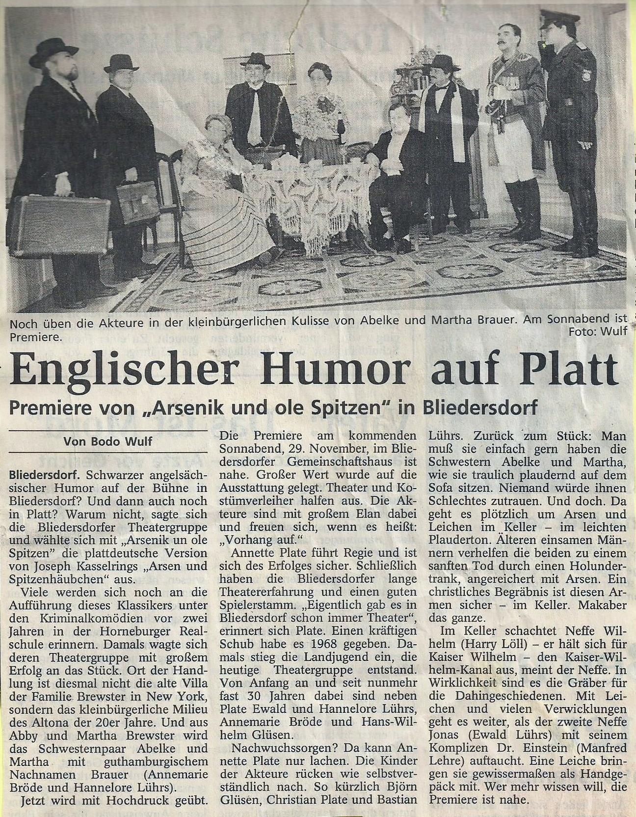 Seit 1966 bringt unsere Theatergruppe plattdeutsche Komödien mit Herz, Humor und echter Bühnenleidenschaft auf die Bühne. Über all die Jahre sind zahlreiche Stücke entstanden, die unser Publikum zum Lachen, Mitfiebern und Wiederkommen eingeladen haben. Auf dieser Seite findest du unsere gespielten Komödien sowie einige Fotos, die an besondere Momente aus mehr als fünf Jahrzehnten Theatergeschichte erinnern.